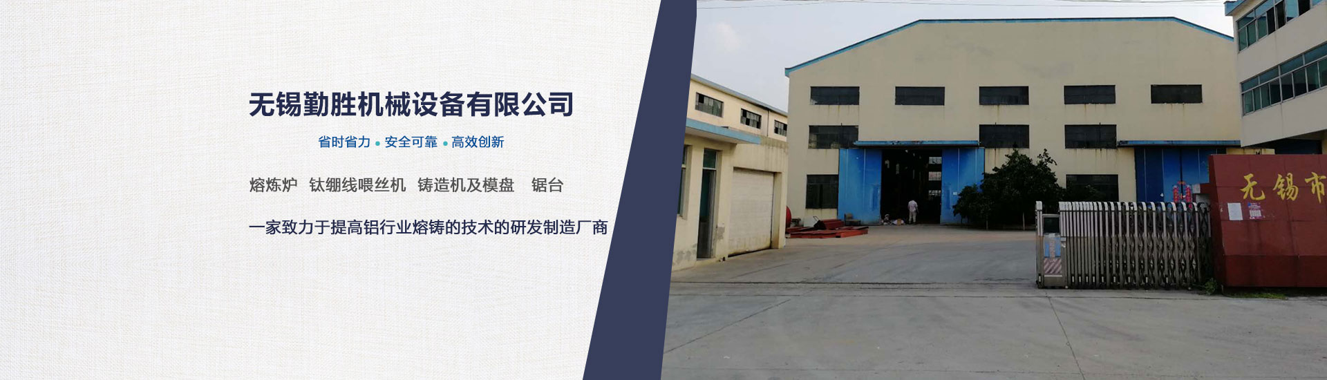 公司簡介  1.1.1 無錫勤勝機械設備有限公司的愿望是致力于提高鋁行業熔鑄的技術。  1.1.2 無錫勤勝機械設備有限公司密切跟蹤 的冶煉和鑄造技術的發展方向,學習創新,研 制開發, 生產銷售鋁行業熔鑄用的各種相關設備和材料。  1.1.3 無錫勤勝機械設備有限公司以強大的專業設計人員和遍布全國的銷售網絡,竭誠貢獻 的技 術水平和優質的服務支持,以全新的管理思想和經營理念為貴公司提
